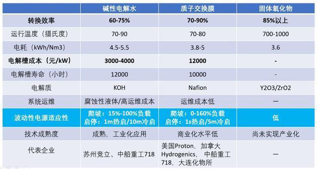 電解制氫技術的主要方案對比