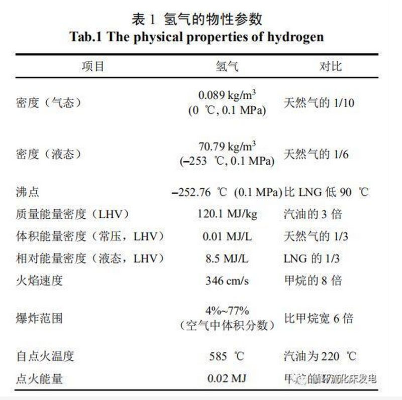 氫氣燃燒只產(chǎn)生水,因此被認為是最清潔、真正實現(xiàn)零排放的能源。但由于其二次能源的基本屬性,氫氣的清潔和環(huán)保性不應僅體現(xiàn)在最終被利用時,還要著眼于生產(chǎn)氫氣的一次能源的來源以及氫氣的制備、運輸、存儲和最終使用等環(huán)節(jié),從全生命周期的角度來考察。這些環(huán)節(jié)都需要消耗能源資源,也可能會帶來相應的污染物與溫室氣體排放。氫氣的物性參數(shù)見表1。