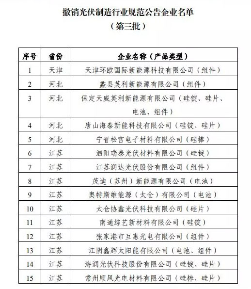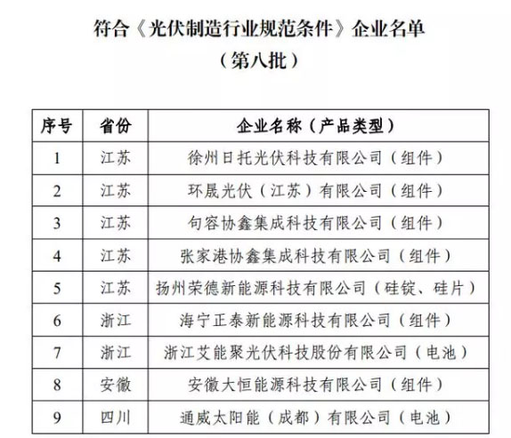據(jù)工業(yè)和信息化部1月3日消息,按照《國務(wù)院關(guān)于促進(jìn)光伏產(chǎn)業(yè)健康發(fā)展的若干意見》(國發(fā)〔2013〕24號)要求,根據(jù)《光伏制造行業(yè)規(guī)范條件》及《光伏制造行業(yè)規(guī)范公告管理暫行辦法》規(guī)定,經(jīng)企業(yè)申報(bào)、省級工業(yè)和信息化管理部門核實(shí)推薦、專家復(fù)核、現(xiàn)場核實(shí)、網(wǎng)上公示等程序,確定符合《光伏制造行業(yè)規(guī)范條件》企業(yè)名單(第八批)、撤銷光伏制造行業(yè)規(guī)范公告企業(yè)名單(第三批),現(xiàn)予以公告。