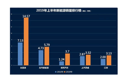2019年上半年國(guó)內(nèi)市場(chǎng)新能源汽車銷售排行,前5名都是自主品牌