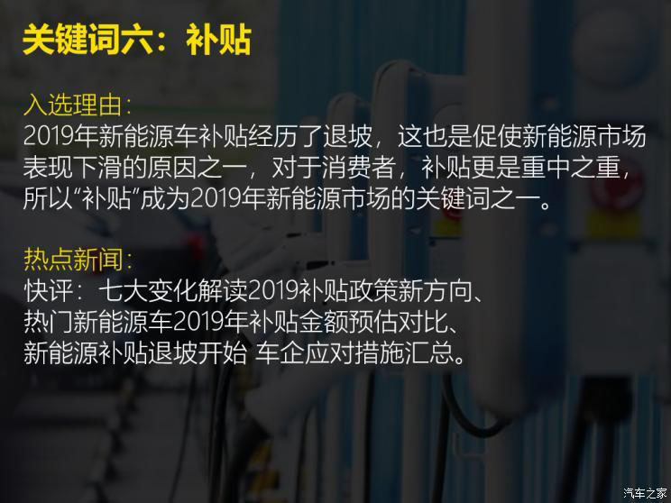 [汽車之家 新能源] 對于新能源車企來說,2019年似乎不是個幸運年,新能源補(bǔ)貼退坡、老生常談的電池安全問題以及各種或好或壞的資本變動等等,無一不在新能源市場掀起驚濤駭浪?!暗兔浴?、“冷淡”或是2019年新能源市場的代名詞,在這一年中,有些車企經(jīng)歷了危及生存的大事件,不過也有很多品牌帶來了出色的產(chǎn)品;在對新一年寄予期望的同時,不妨先回顧一下2019年的那些大事。