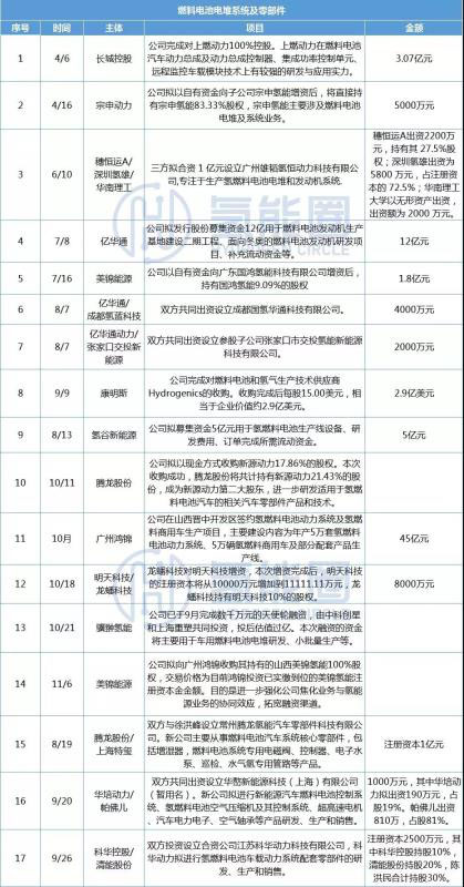 以下為2019年氫能與燃料電池產(chǎn)業(yè)投資項(xiàng)目:(氫能圈根據(jù)公開資料整理)