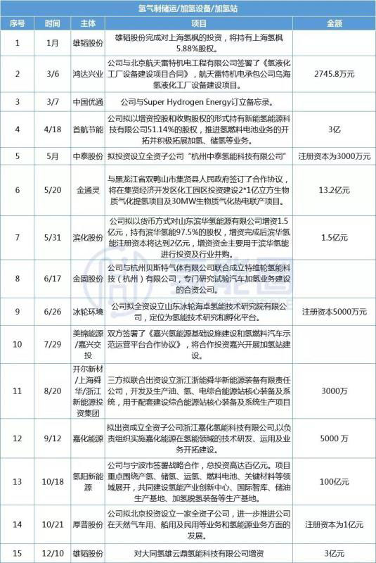 表|氫氣制儲(chǔ)運(yùn)設(shè)備及加氫站項(xiàng)目