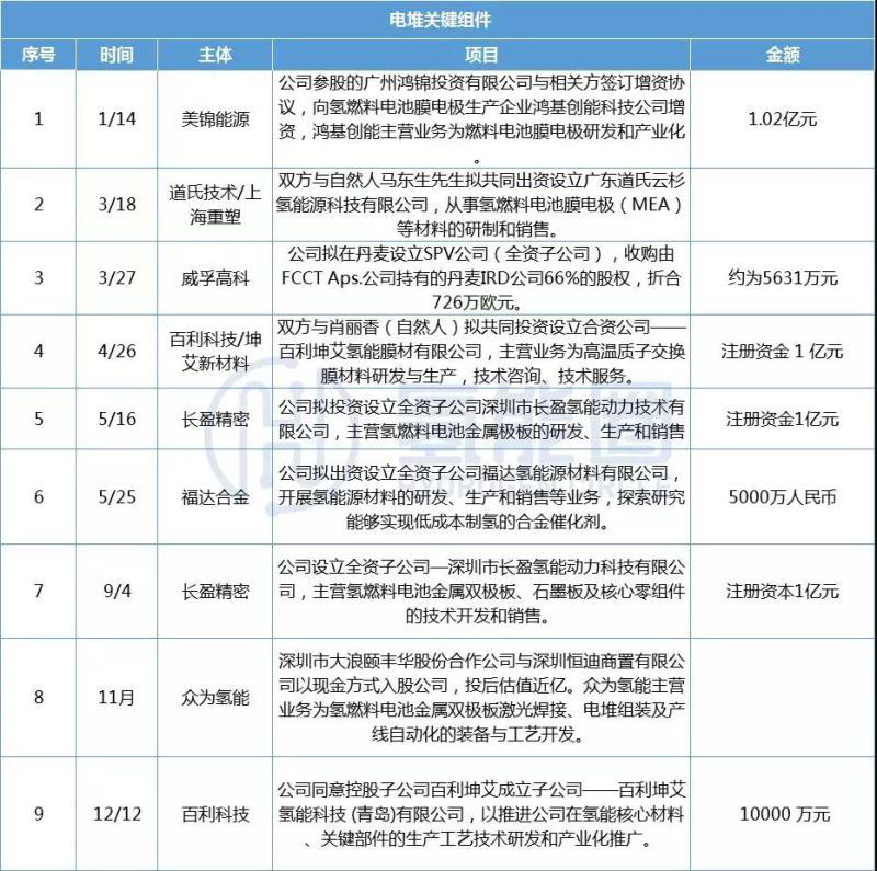 表|電堆關(guān)鍵組件項(xiàng)目