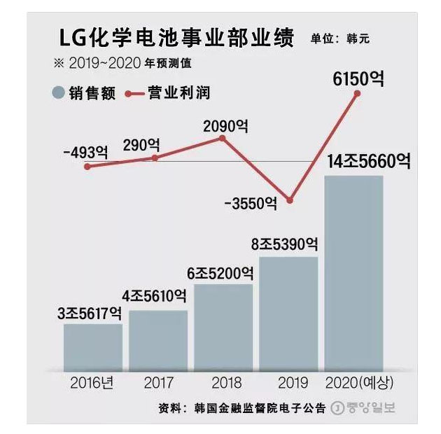 預(yù)計(jì)2019年汽車動(dòng)力電池的銷售額為5萬(wàn)億韓元(約合人民幣301億元),2020年有望達(dá)到10萬(wàn)億韓元(約合人民幣602億元)。