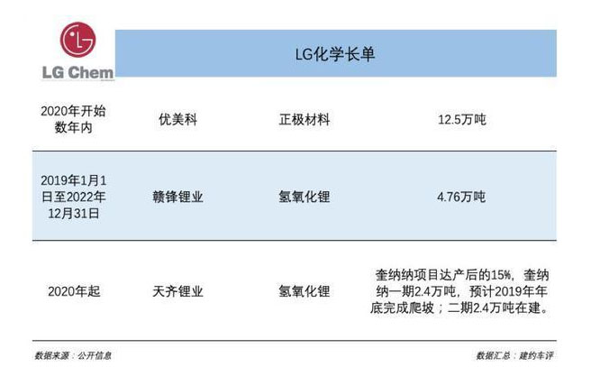 LG化學(xué)與中國(guó)的鋰礦兩巨頭贛鋒鋰業(yè)和天齊鋰業(yè)分別簽訂了長(zhǎng)單采購(gòu)協(xié)議。