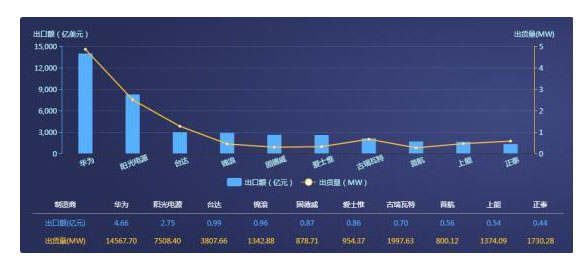 根據(jù)2019年1-11月逆變器海外出貨量,智新咨詢(xún)預(yù)測(cè)2019年逆變器海外出貨量及出口額前三名為華為、陽(yáng)光電源、臺(tái)達(dá)。