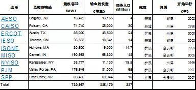 ▲北美洲九個(gè)電力市場(chǎng)的簡(jiǎn)單統(tǒng)計(jì)