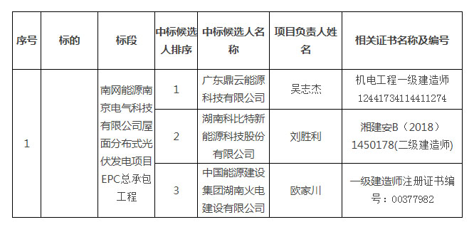 南網(wǎng)能源南京電氣科技有限公司屋面分布式光伏發(fā)電項(xiàng)目EPC總承包工程中標(biāo)候選人公示