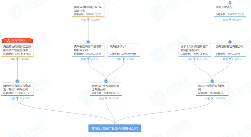 啟信寶數(shù)據(jù)顯示,青海匯信成立于2019年12月中旬,注冊資本26億元,第一大股東為海西州國有資本投資運營(集團)有限公司,持股比例為42.31%,另外兩大股東為青海省產(chǎn)業(yè)發(fā)展投資基金有限公司和格爾木投資控股有限公司,分別持股38.46%和19.23%。上述三大股東的背后則是青海當(dāng)?shù)厥?、市(州)的國資委或財政部門。