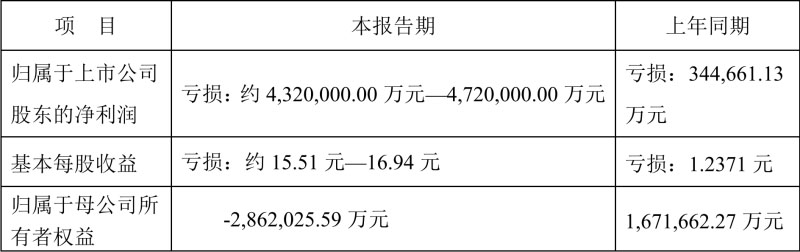 大幅折價處置不良資產(chǎn)后,*ST鹽湖2019年度業(yè)績也將因巨額資產(chǎn)減值損失出現(xiàn)大幅虧損。*ST鹽湖預(yù)計2019年公司預(yù)計虧損約432億元~472億元。《每日經(jīng)濟新聞》記者注意到,此次*ST鹽湖預(yù)虧超400億元,或?qū)⒊蔀榻陙鞟股虧損最多的公司。2014年~2018年,A股虧損王分別為中國鋁業(yè)、酒鋼宏興、石化油服、樂視網(wǎng)和天神娛樂,分別虧損162億元、73.6億元、162億元、138億和71.5億元。