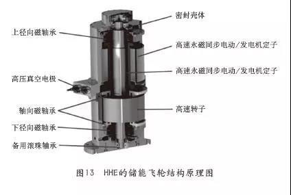 圖13示出的儲能飛輪使飛輪的轉(zhuǎn)數(shù)提升到5位數(shù)。結(jié)構(gòu)上的變化,使其具有了如下的優(yōu)點: