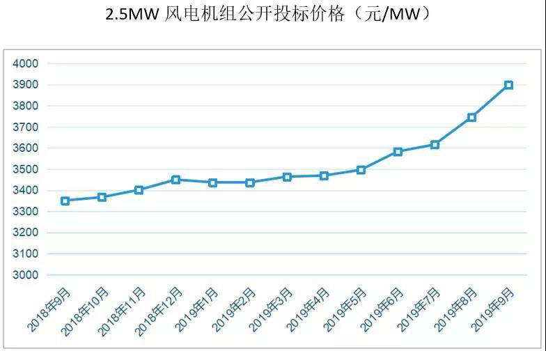 而這一預(yù)測(cè)未到年底便得以驗(yàn)證。如今大多風(fēng)機(jī)價(jià)格已經(jīng)在4000元/千瓦左右。據(jù)悉,在2019年11月的風(fēng)電整機(jī)設(shè)備招投標(biāo)過(guò)程中更是出現(xiàn)了4500元/千瓦左右的報(bào)價(jià)。