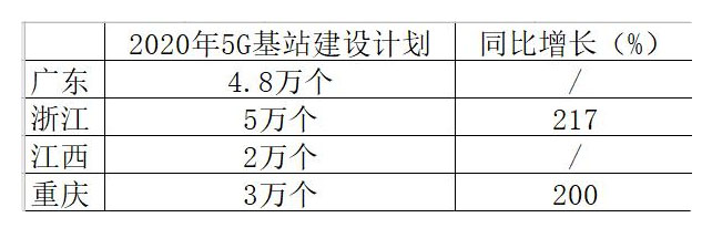 最近地方兩會(huì)傳出的國(guó)內(nèi)部分省市2020年5G基站建設(shè)目標(biāo)