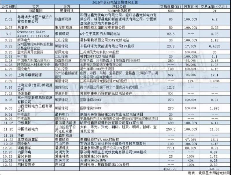 近年來,光伏投資領域變幻莫測、風起云涌。據(jù)不完全統(tǒng)計,2019年電站交易規(guī)模達4.24GW,交易金額為140多億。值得關注的是,這些交易的背后展露出有一個非常有趣的現(xiàn)象:買方多為國有企業(yè),賣方均為老牌民營企業(yè)。