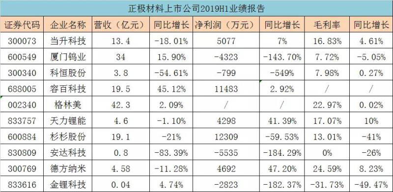 上述企業(yè)在半年報(bào)中指出,公司正極材料業(yè)務(wù)營(yíng)收凈利下滑主要原因是,上游原材料價(jià)格大幅下滑導(dǎo)致正極材料產(chǎn)品價(jià)格和毛利率下跌,壓縮了正極材料的盈利空間。