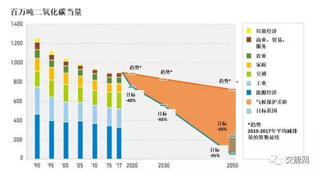 圖2:德國溫室氣體排放變化趨勢與所設(shè)目標(biāo)
