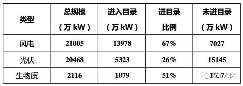 因此,各類(lèi)可再生能源項(xiàng)目并網(wǎng)、進(jìn)入目錄的情況如下表所示。