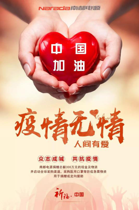 “在這樣一個關鍵時刻,南都電源堅定支持為抗擊疫情所做的所有努力。這場戰(zhàn)斗不僅僅是中國之戰(zhàn),也關乎整個國際社會?!蹦隙茧娫纯偛弥毂Ax表示,“公司后續(xù)將密切關注疫情進展,切實踐行企業(yè)社會責任,根據(jù)情況提供進一步的支持,決勝抗擊疫情戰(zhàn)役?!?