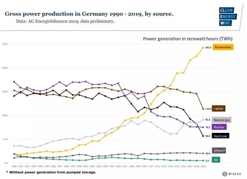 根據(jù)德國根據(jù)能源市場研究組織AG Energiebilanzen初步數(shù)據(jù),2019年底德國發(fā)電裝機容量為: