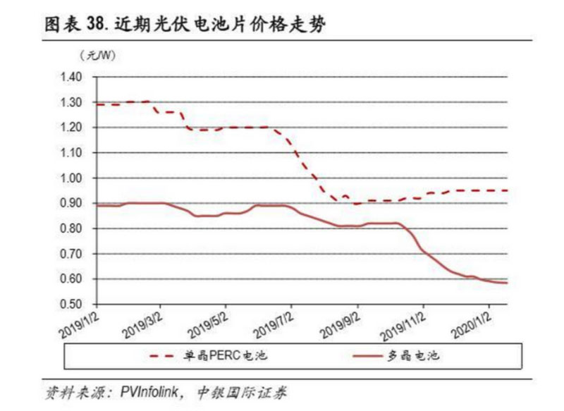 在上述假設(shè)前提下,由非硅成本測(cè)算結(jié)果,我們預(yù)判異質(zhì)結(jié)電池非硅成本的臨界范圍約在 0.4-0.5 元 /W;如果異質(zhì)結(jié)電池非硅成本達(dá)到臨界范圍,異質(zhì)結(jié)電池相對(duì)于目前主流單晶 PERC 電池的性價(jià)比 優(yōu)勢(shì)有望逐步顯現(xiàn),從而有望實(shí)現(xiàn)對(duì)于單晶 PERC的替代。