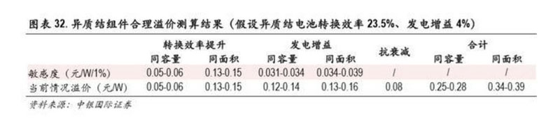 當(dāng)前組件溢價(jià)可允許 HJT 非硅成本高出 0.18-0.27 元/W