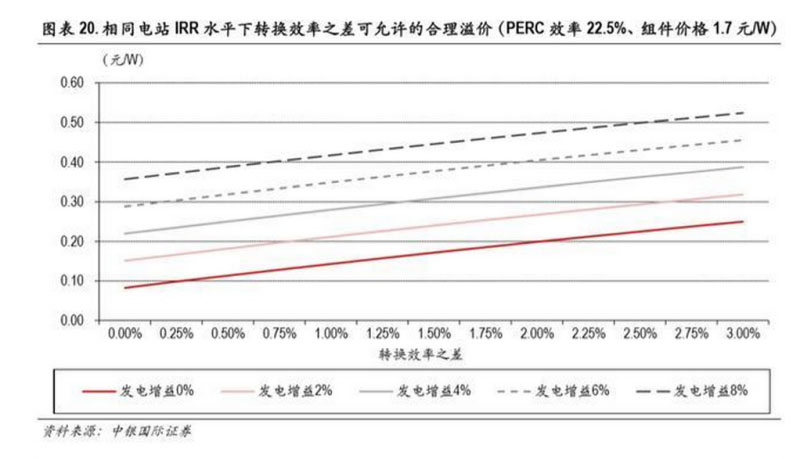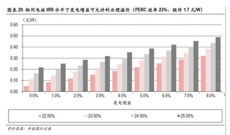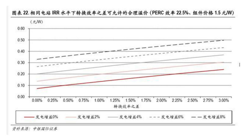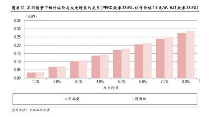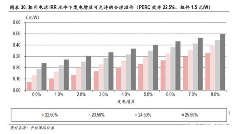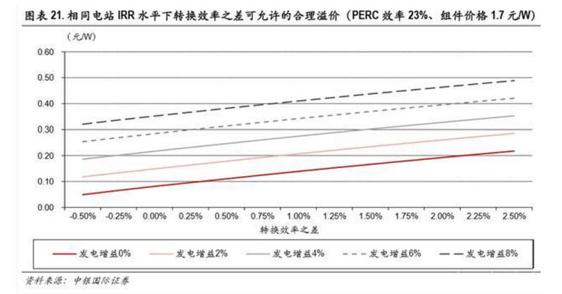 轉(zhuǎn)換效率溢價(jià)來自于發(fā)電功率提升和電站成本攤薄