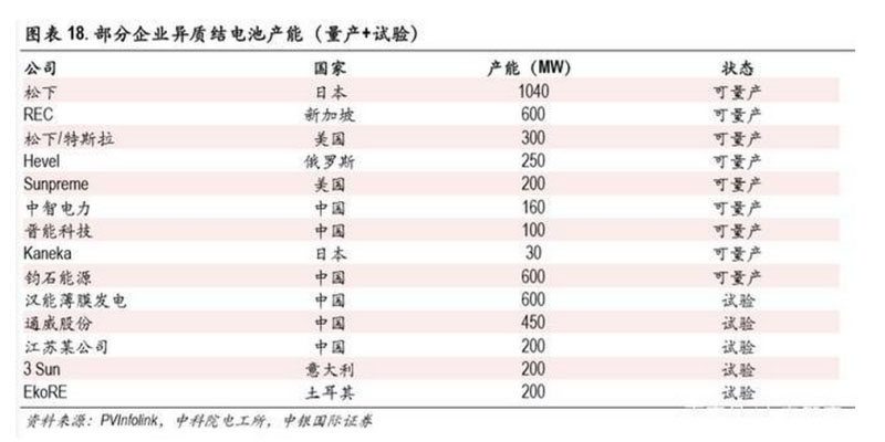 多方面優(yōu)勢(shì)帶動(dòng)產(chǎn)業(yè)化熱情:出于異質(zhì)結(jié)電池在上述多方面存在的優(yōu)勢(shì),在異質(zhì)結(jié)電池結(jié)構(gòu)專利過 期后,世界范圍內(nèi)異質(zhì)結(jié)電池的產(chǎn)業(yè)化開始萌芽,國內(nèi)亦有企業(yè)和科研院所進(jìn)行研發(fā)和生產(chǎn)。近兩 年隨著試驗(yàn)產(chǎn)品轉(zhuǎn)換效率逐步提升以及制造設(shè)備的成本下降取得一定進(jìn)展,產(chǎn)業(yè)內(nèi)對(duì)異質(zhì)結(jié)電池產(chǎn) 線的投資熱情逐步提高,目前全球范圍內(nèi)已有約 5GW量產(chǎn)與試驗(yàn)產(chǎn)能。