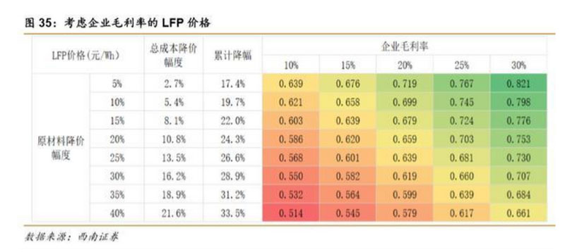 3) 進(jìn)一步假設(shè)原材料(包含正極、負(fù)極、隔膜、電解液、銅箔、甲基、電池箱)價格 降幅 20%