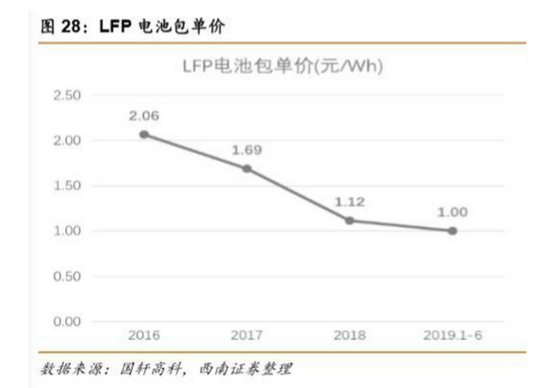根據(jù) 2019 年 9 月 17 日國軒高科發(fā)布的《關(guān)于請做好國軒高科公開發(fā)行可轉(zhuǎn)債發(fā)審委會 議準(zhǔn)備工作的函》的回復(fù)中的內(nèi)容,國軒高科 2016-2019 年上半年磷酸鐵鋰電池的單價分別 為 2.06 元/Wh,1.69 元/Wh,1.12 元/Wh,1.00 元/Wh,對應(yīng)的毛利率分別為 48.7%,39.8%, 28.8%和 30.4%。