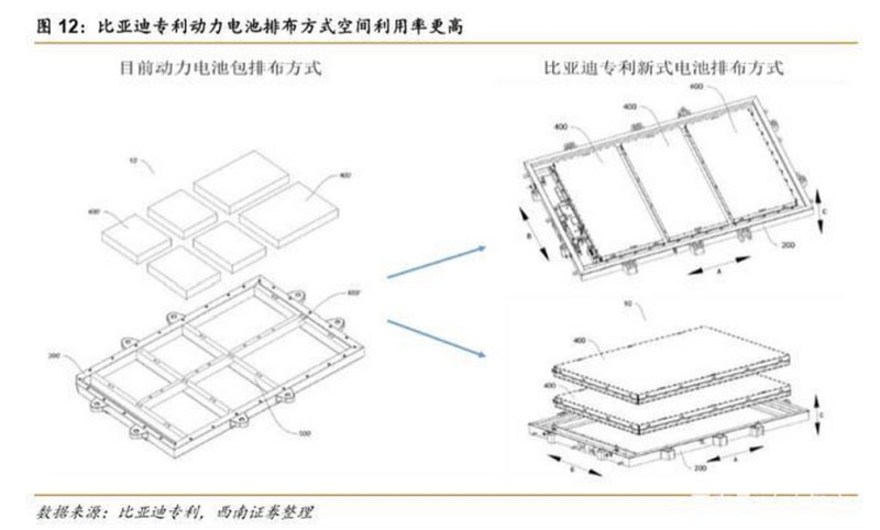 在 CTP 技術(shù)方面,寧德時代注重電池模組拆卸的方便性,比亞迪更關(guān)心單體電池如何 更多裝載和空間利用率等問題。