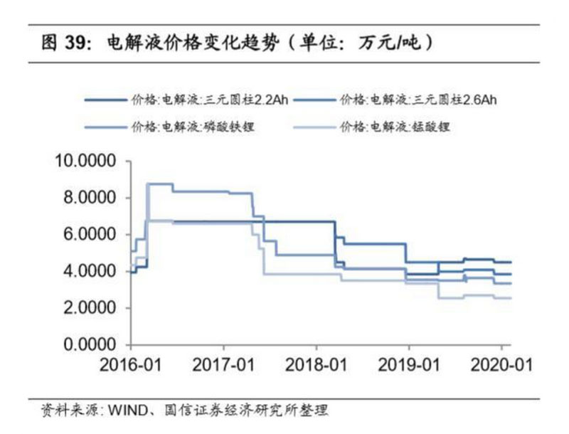 高鎳化對(duì)電解液提出升級(jí)需求,龍頭企業(yè)布局添加劑和新型鋰鹽增強(qiáng)差異化競(jìng) 爭(zhēng)能力。行業(yè)對(duì)續(xù)航里程及能量密度的提升推動(dòng)了電池高鎳化進(jìn)展,而動(dòng)力電 池從 333/523 到 622/811 的發(fā)展過程也給電解液帶來了巨大的挑戰(zhàn):高鎳三元 正極的吸水性強(qiáng)、穩(wěn)定性低,在高溫條件下鎳元素的催化作用會(huì)加速電解液的 分解,使電解液氧化、產(chǎn)氣,極片產(chǎn)生裂縫并且溶出的錳、鈷等過渡金屬離子 還會(huì)破壞負(fù)極上的 SEI 膜,致使在高溫環(huán)境下電池的容量、循環(huán)和安全性都受 到嚴(yán)重影響。從目前的改進(jìn)措施來看,新型溶劑和鋰鹽雖然得到了部分應(yīng)用, 但出于多方面性能要求和成本考慮,新添加劑的開發(fā)仍是電解液性能提升的關(guān) 鍵。同時(shí)新型鋰鹽的布局也有助于龍頭公司實(shí)現(xiàn)高端化競(jìng)爭(zhēng)策略。