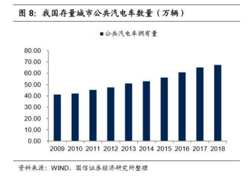 存量出租車、公交車替換大有可為,有望為國內(nèi)新能源汽車銷量貢獻(xiàn)增量。根 據(jù)國家統(tǒng)計(jì)局和交通部統(tǒng)計(jì),截至 2018 年我國存量城市出租車數(shù)量為 109.72 萬輛,存量公共汽電車數(shù)量為 67.34 萬輛,2015-2018 年我國新能源客車銷量 53.73 萬輛,按城市公交占比 85%計(jì)算,尚有 20 萬輛+的存量替換空間;而出 租車領(lǐng)域,目前除了深圳區(qū)域新能源滲透率較高、北、上、廣等一線城市仍在 快速替代階段。