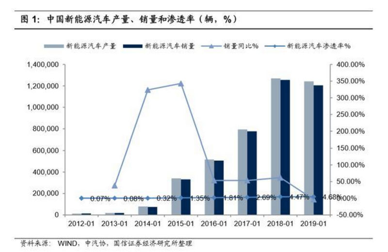 2019 年全年國內(nèi)新能源汽車?yán)塾?jì)銷售 120.6 萬輛,同比下降 4%,目前新能源 汽車滲透率僅為 4.68%,未來成長(zhǎng)空間巨大。受補(bǔ)貼退補(bǔ)和傳統(tǒng)燃油汽車銷量 不佳影響,新能源汽車銷量連續(xù)下滑,根據(jù)中汽協(xié)數(shù)據(jù)統(tǒng)計(jì),截至 2019 年 12 月我國新能源汽車銷量為 120.6 萬臺(tái),同比下降 4%, “補(bǔ)貼退坡+爆款車型斷檔” 是目前國內(nèi)新能源汽車銷量面臨的最大難題。從成長(zhǎng)空間看,2019 年新能源汽 車銷量滲透率僅為 4.68%,存量滲透率不足 2%,在此大背景下,未來新能源 汽車成長(zhǎng)空間巨大。