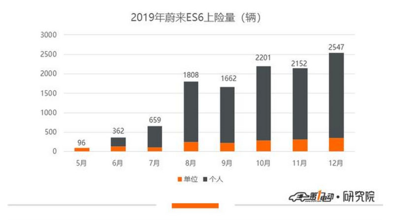 蔚來ES8在2019年共上險(xiǎn)8159輛,其中個(gè)人用戶上險(xiǎn)9264輛,是蔚來2019上半年的主力支持車型,其中個(gè)人上險(xiǎn)6524輛,單位上險(xiǎn)2690輛。