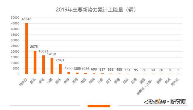 進(jìn)口特斯拉則是以累計(jì)4.5萬輛的交付量領(lǐng)先一眾新勢(shì)力,國產(chǎn)特斯拉也在2019年的最后一個(gè)月開始正式上險(xiǎn)交付。