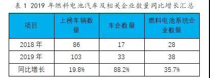 工信部2019年第1批-第11批《新能源汽車推廣目錄車型信息》(下稱目錄)顯示,燃料電池車已達(dá)103款,上榜的整車企業(yè)和燃料電池系統(tǒng)企業(yè)數(shù)量增長(zhǎng)較快,同比增長(zhǎng)88.2%和35.7%。相關(guān)企業(yè)分布區(qū)域更加廣泛,整車企業(yè)和燃料電池系統(tǒng)企業(yè)分別分布在16和13個(gè)省、直轄市,所在省、直轄市數(shù)量分別增長(zhǎng)60%和30%。