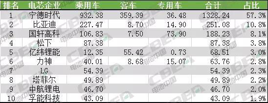 在電池企業(yè)方面,外資電企松下、LG進(jìn)前十。寧德時(shí)代、比亞迪和國軒高科排名位列前三,裝機(jī)量之和占國內(nèi)新能源汽車動(dòng)力電池裝機(jī)量的76.3%。值得一提的是,本月外資電池企業(yè)松下和LG分別以87.38MWh和54.39MWH的裝機(jī)量進(jìn)入中國國內(nèi)市場排名前十,分別位列第四、第七名。