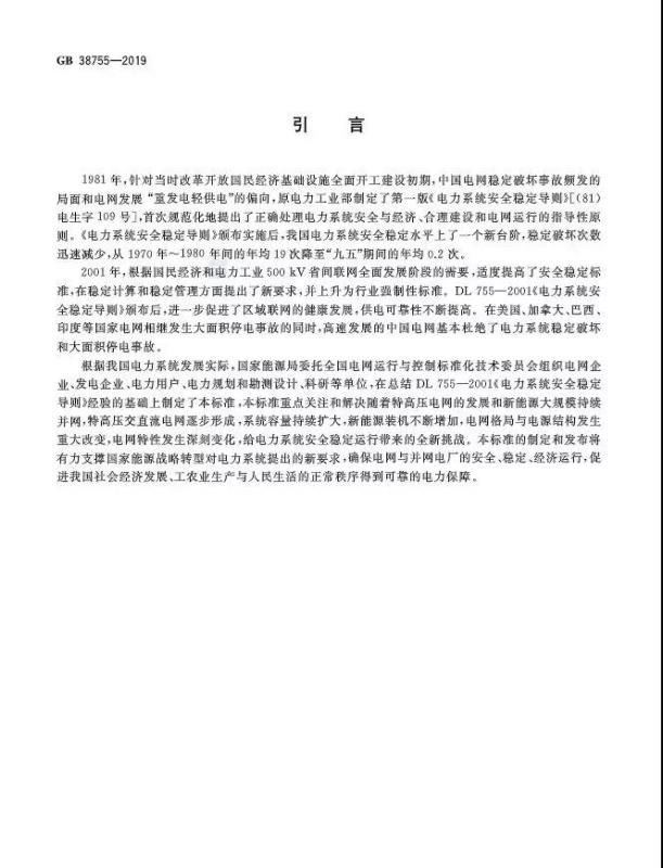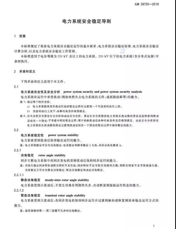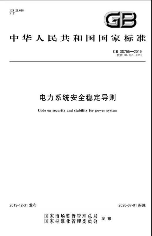 日前,強制性國家標準GB 38755-2019《電力系統(tǒng)安全穩(wěn)定導則》發(fā)布。