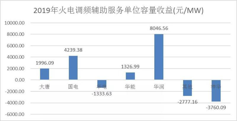圖四 山東區(qū)域各集團調(diào)頻輔助服務單位容量收益對比圖
