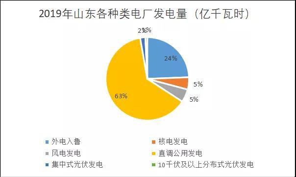 圖一 2019年山東各類電廠發(fā)電量比例圖