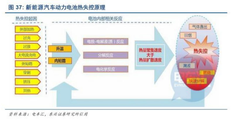 綜合多家媒體報道,諸多新能源汽車起火事件與動力電池?zé)崾Э兀ㄔ砣鐖D 37 所示)有一定相關(guān) 性。從工信部裝備工業(yè)發(fā)展中心 2019 年 11 月 12 日發(fā)布的《關(guān)于實施<電動汽車用動力蓄電池系統(tǒng)熱 擴(kuò)散乘員保護(hù)測試規(guī)范(試行)>有關(guān)事項的通知》, 可以看出,官方對于動力電池?zé)峁芾韱栴}提高了重 視程度。