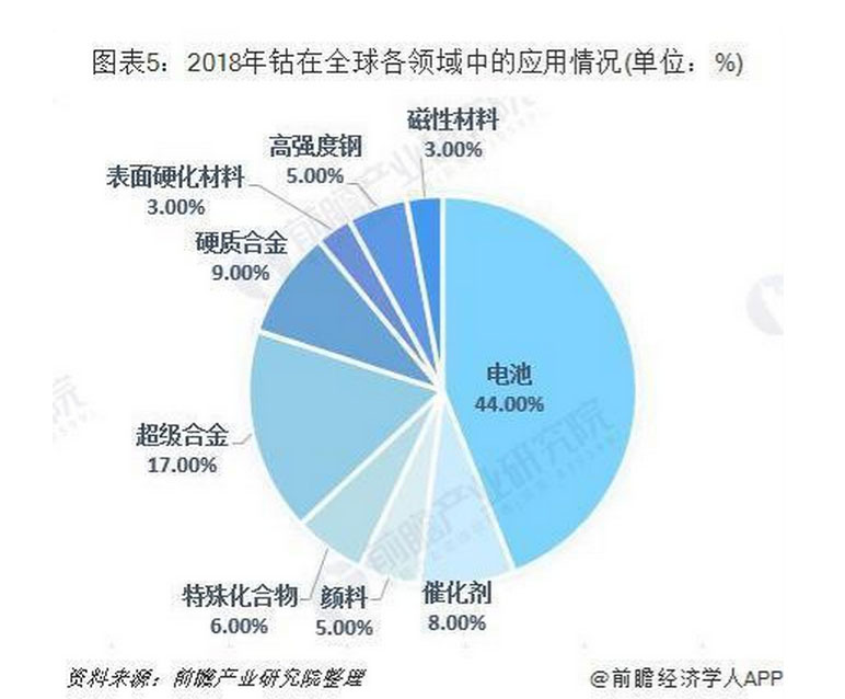根據國際鈷業(yè)協(xié)會(CI)2019年發(fā)表的全球鈷應用報告,鈷在各行業(yè)的應用情況如下: