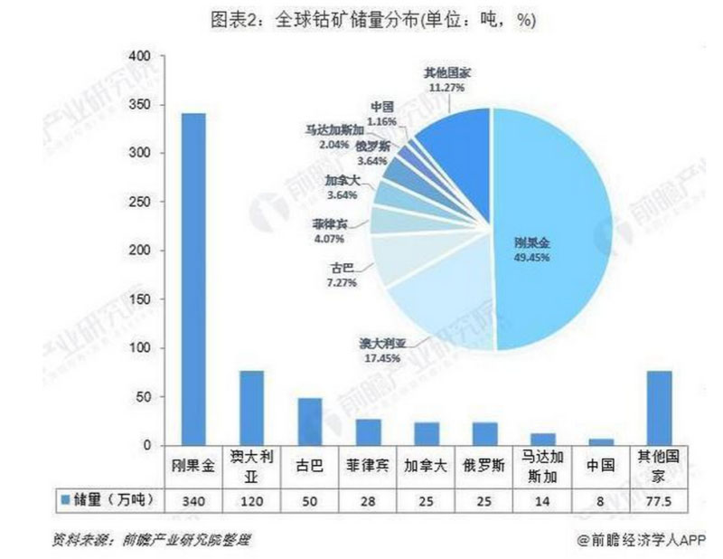 2、全球鈷礦資源儲量分布