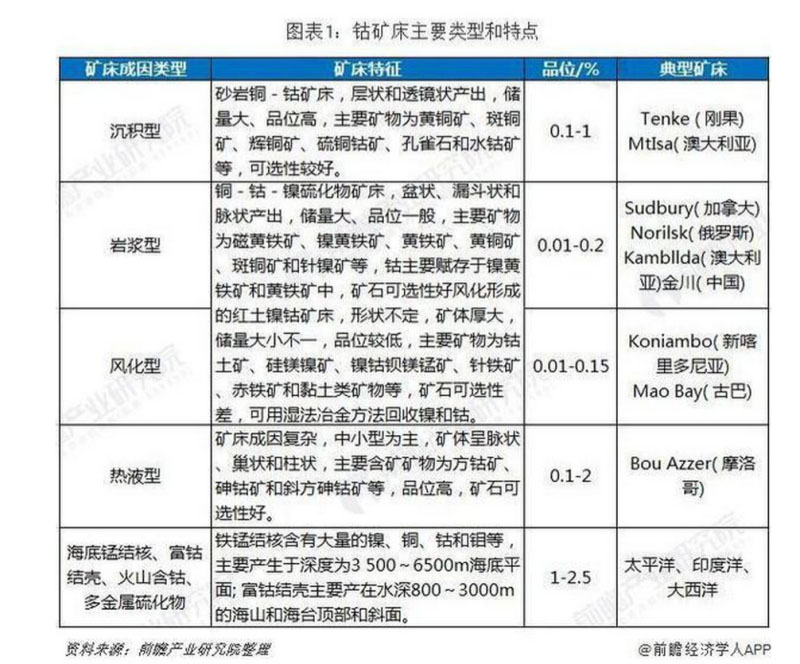1、鈷礦物和礦床類型