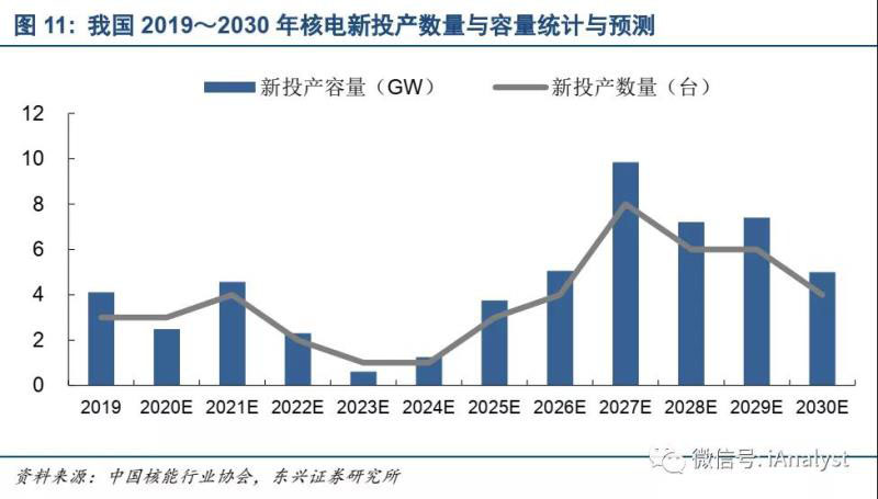 展望2020~2025年,我們預計將有31臺機組開建,陸續(xù)于2025~2030年投產(chǎn),這些項目有:漳州2號,太平嶺1、2號,田灣7、8號,徐大堡1-4號,海陽3、4號,榮成石島灣大堆1、2號,臺山3、4號,昌江3、4號,三門3、4號,寧德5、6號,陸豐1、2號,霞浦1、2號,海興1、2號,防城港5、6號,金七門1、2號。