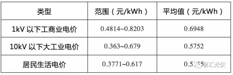不同用電戶的銷售電價差異很大,工商業(yè)電價、大工業(yè)電價、居民電價均為電網(wǎng)的銷售電價,全國的平均水平如下表。