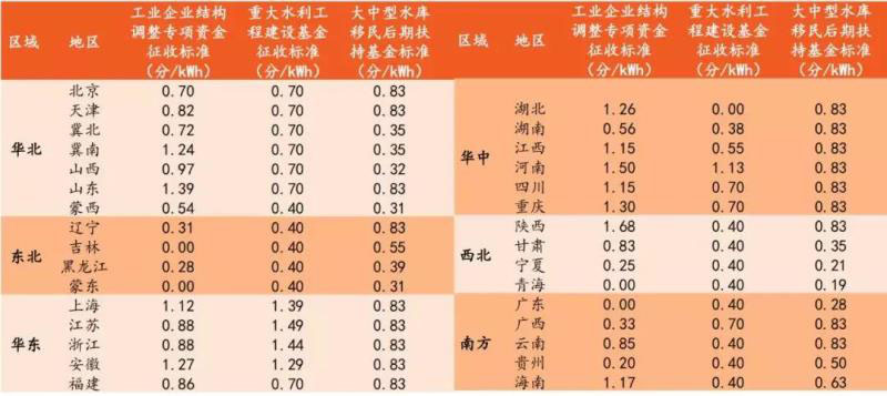 可再生能源附加為全國統(tǒng)一1.9分/kWh;
