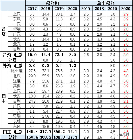 2019年各廠家的新能源車表現(xiàn)很好,總體積分提升很快,每家車企的積分基本也都是在提升中。比亞迪和北汽、吉利、北汽新能源、上汽乘用車、奇瑞的新能源車表現(xiàn)優(yōu)秀,總分和單車積分都有提升。