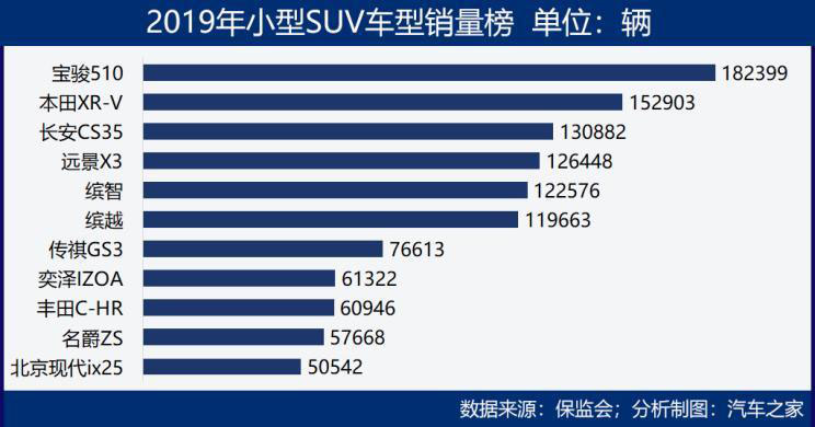 比如,本田XR-V車(chē)型2019年在一級(jí)城市的銷(xiāo)量上漲了2.3%,在年度車(chē)型榜上依然排在第二位,冠軍車(chē)型寶駿510的年銷(xiāo)量下滑了41%,長(zhǎng)安CS35則同比上漲23%。吉利汽車(chē)在2018年底推出的新車(chē)型繽越全年銷(xiāo)售12萬(wàn)輛,排在廣汽本田的繽智之后。年度銷(xiāo)量超過(guò)5萬(wàn)輛的車(chē)型中,日系上榜4款,另有北京現(xiàn)代ix25也進(jìn)榜,2018年8月上市的另一款韓系小型SUV在2019年銷(xiāo)售了3.9萬(wàn)輛。小型SUV市場(chǎng)上也出現(xiàn)了豪華品牌的身影,奧迪Q2L,2018年底上市,2019年實(shí)現(xiàn)銷(xiāo)量3.8萬(wàn)輛。